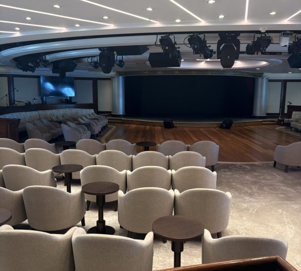 Myself and the other Product Managers onboard had a welcome chat in the Cabaret Lounge at the front of the ship on deck 5. This is where all of the safety briefings and shore excursions tend to depart from during the day, but at night it comes alive with various cabaret shows, dance performances, guitar players and singers.