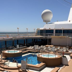 The pool deck was beautiful, with a central pool and two hot tubs. On our chilly Alaskan itinerary, the pool saw little use, but I did enjoy a soak in the hot tubs. For a ship with 1,200 guests, I imagine this area could feel crowded on warmer cruises.