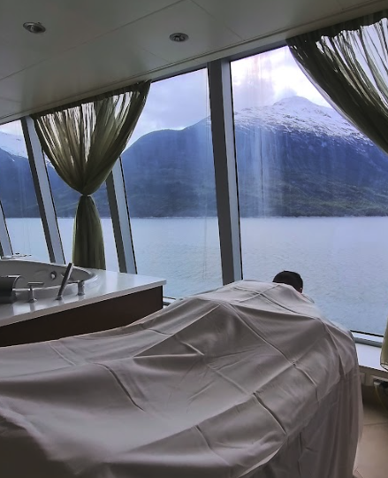 The Aquamar Spa is a lovely, relaxing space located on Deck 12 forward. There’s a full menu of treatments available, including massages, facials, nails, hair treatments and more. That said, expect to pay cruise-level prices. My 75-minute deep tissue massage came to around AUD $350 with service fees. That said, it was a nice massage and made even more special by the snowy mountain views outside the treatment room window.